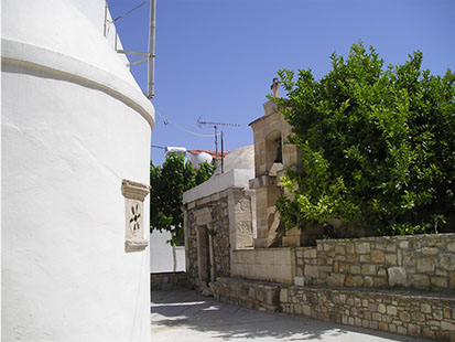 Rondom de plateia met het dorpskerkje bevinden zich authentieke tavernes en kafenions. Aan de noordrand van het dorp ligt op een heuvel het midden-minoïsche tholosgraf. Het werd voor de tijd van de grote paleizen niet alleen voor ceremoniële doeleinden gebruikt, maar had tevens sociale functies. Hier vonden oogst- en lentefeesten plaats en werden drinkrituelen gehouden ter ere van de doden en levenden. Vanaf het graf heeft u een prachtig uitzicht over de Messara-vlakte, de Libische Zee en het Psiloritis-massief.